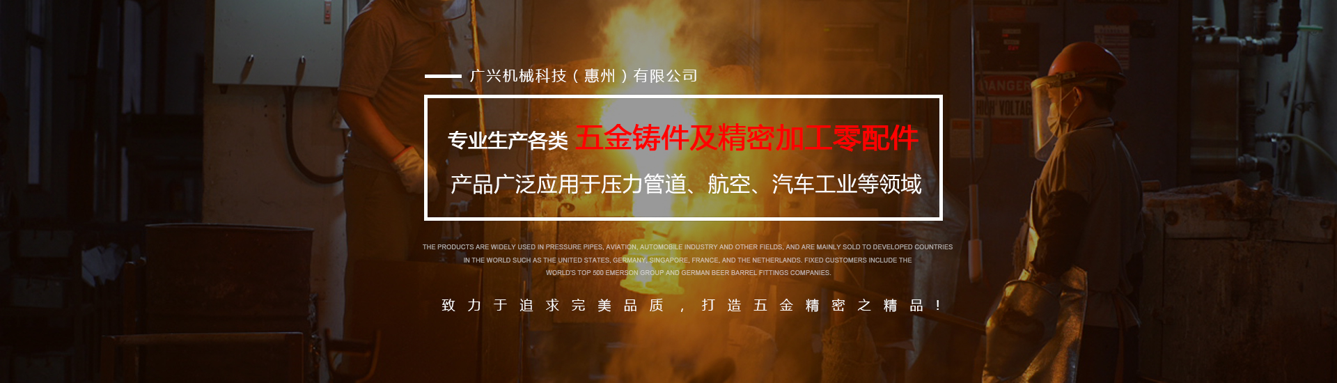 公司專業生產各類五金鑄件及精密加工零配件,可熔煉材質為全系列不銹鋼及碳鋼,主要生產材質有304、316316L、17-4、430、409等,年生產各種不銹鋼鑄件1000余噸。產品廣泛應用于壓力管道、航空、汽車工業等領域,主要銷往美國、德國、新加坡、法國、荷蘭等世界發達國家,固定客戶有世界500強艾默生集團及德國啤酒桶配件公司。